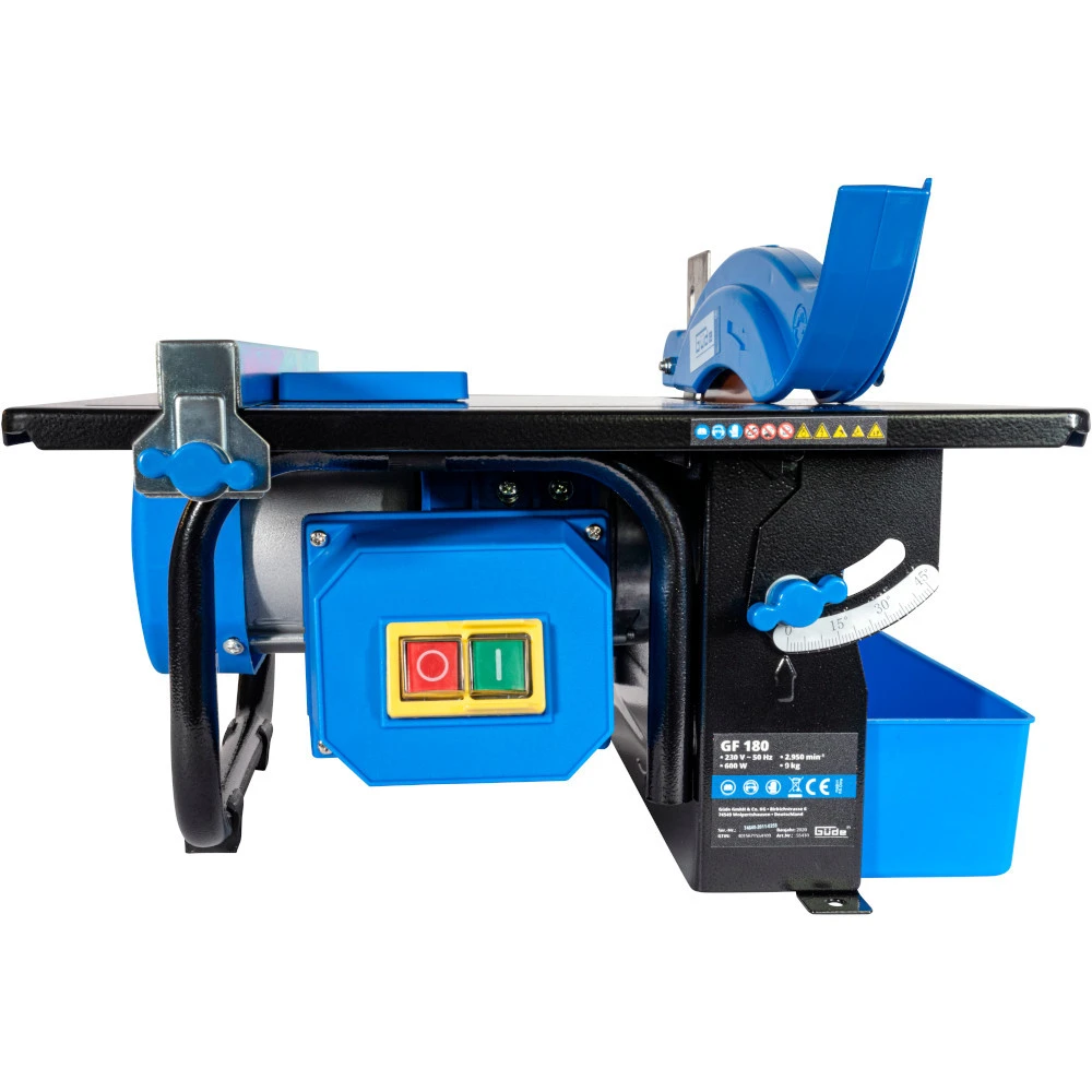 Der Fliesenschneider hat einen Parallelanschlag und eine integrierte Diagonalschnittlehre für präzise Schnitte. Mit seinem leistungsstarken Induktionsmotor und der 180 mm großen Diamanttrennscheibe ist er ideal für die Bearbeitung deiner Fliesen geeignet. Durch den eingebauten FI-Schalter ist eine maximale Sicherheit jederzeit gewährleistet. Dank des verstellbaren Arbeitstisches kannst du präzise Winkelschnitte bis zu 45° durchführen. Bei 90° können mit dem Fliesenschneidgerät Fliesen bis zu einer Stärke von 34mm bearbeitet werden.