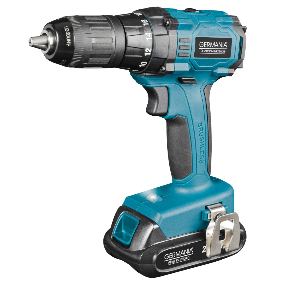 GERMANIA Plattform Akkuschrauber Brushless 20 V mit Li-Ion-Akku und Ladegerät