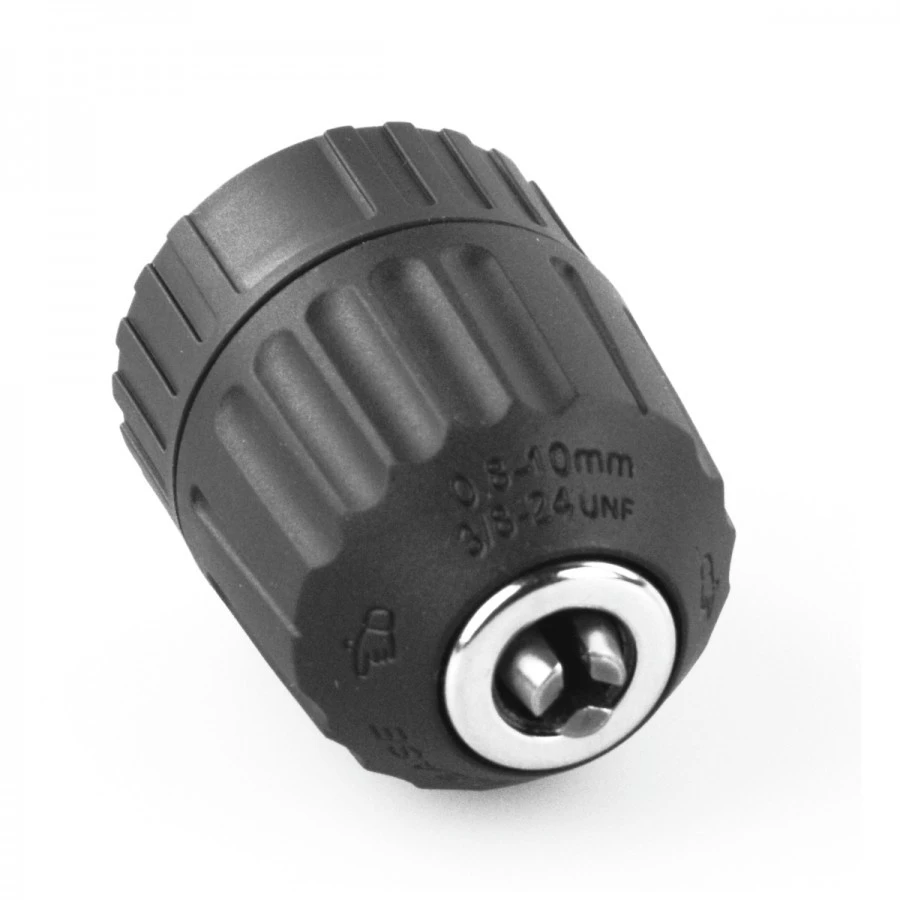 Das Schnellspann-Bohrfutter dient der Kraftübertragung von der Bohrmaschine auf das eingespannte Zubehör. Durch das hochwertige Bohrfutter können Bohrer und Bits schnell und sicher eingespannt werden, ganz ohne Bohrfutterschlüssel. Auch als Ersatzbohrfutter geeignet.